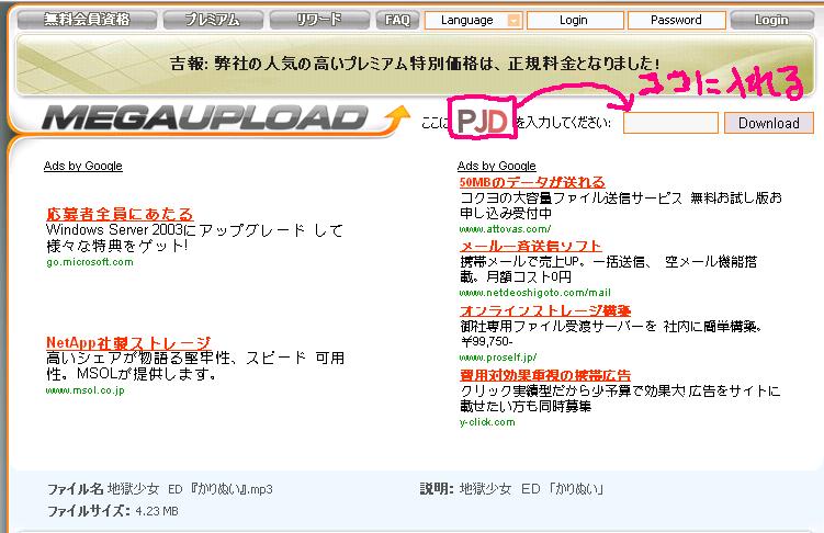 3つのアルファベットを空いている部分に入れて「ダウンロード」のボタンを押していただければおkです。