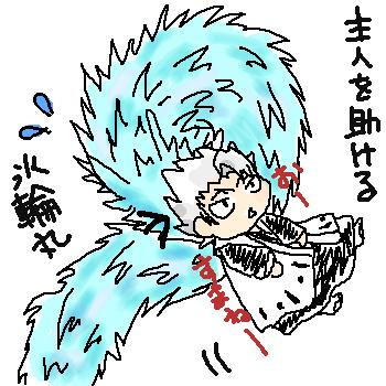主人(冬獅郎)を助けるペット(氷輪丸) お絵かき帳にコレを描いてたら、姉様から「描け!!」って脅されてしまいましたw